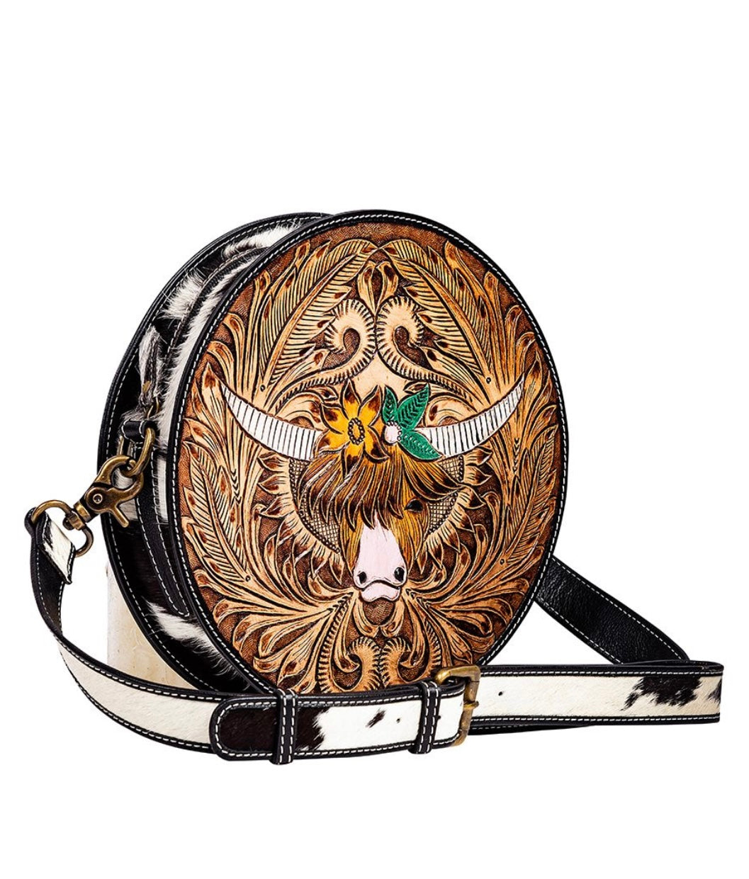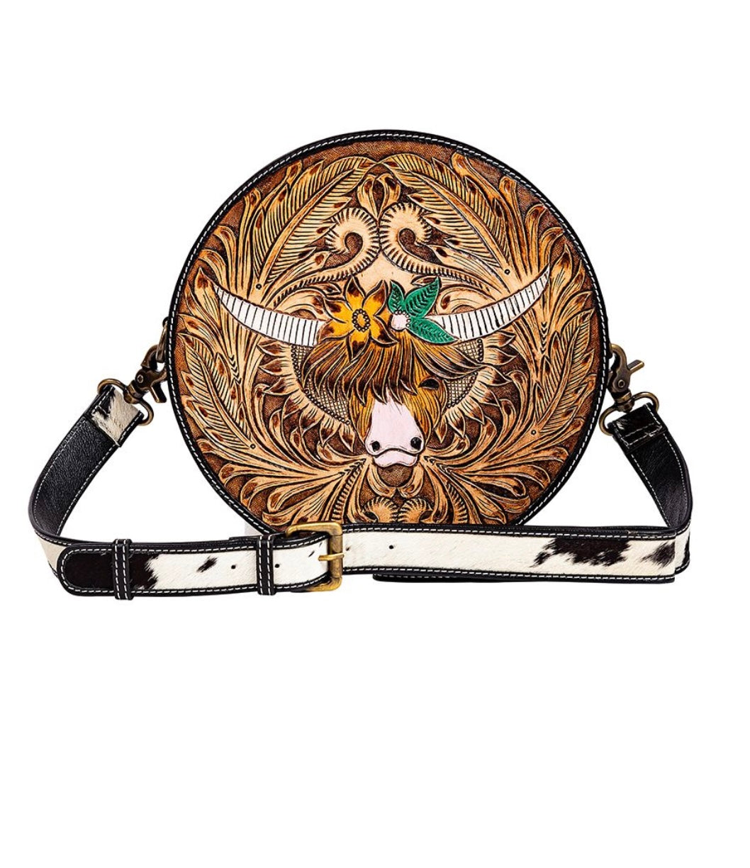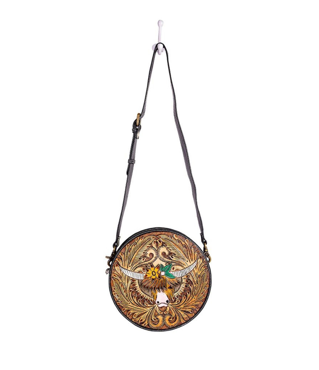 BLOOMIN' STEER HAND-TOOLED ROUND BAG