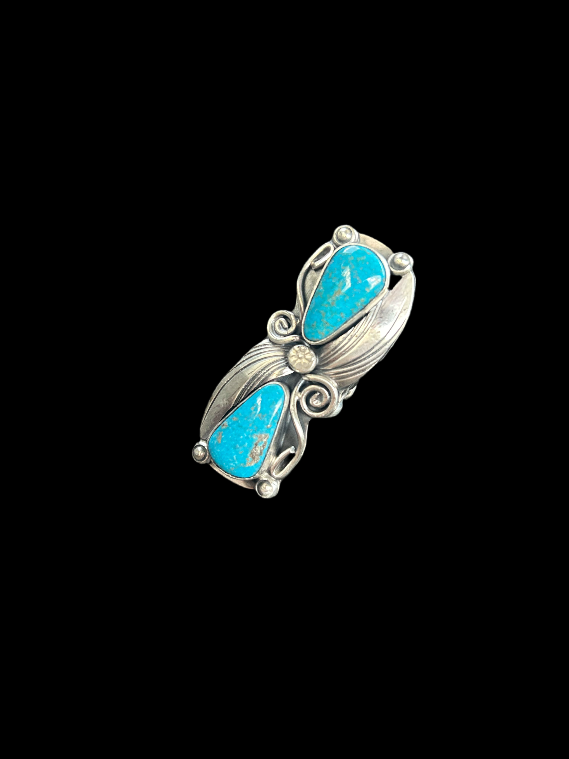 Blue Sonoran Gold Turquoise Native Made Crawler Ring