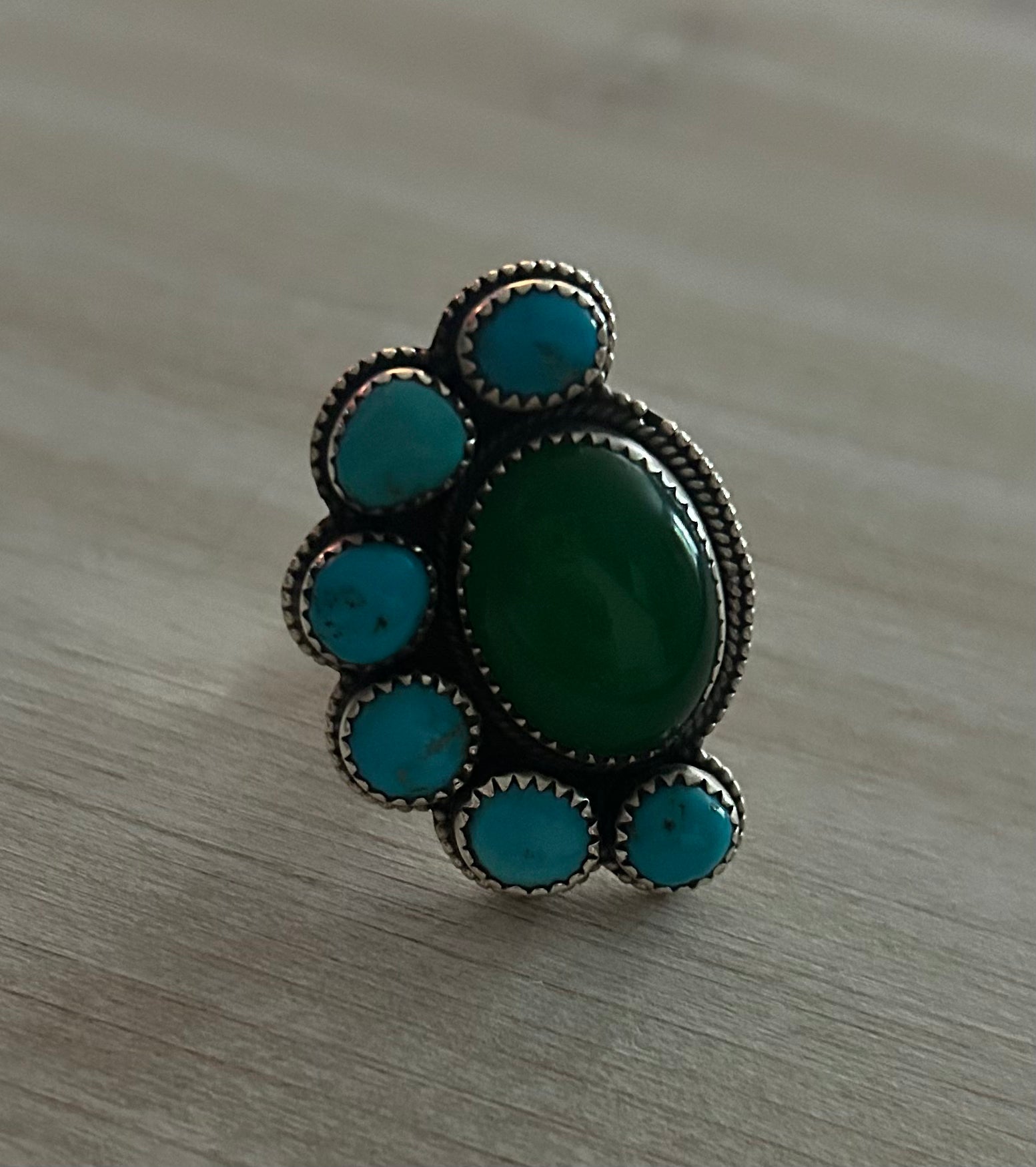 Kingman & Jade half cluster ring