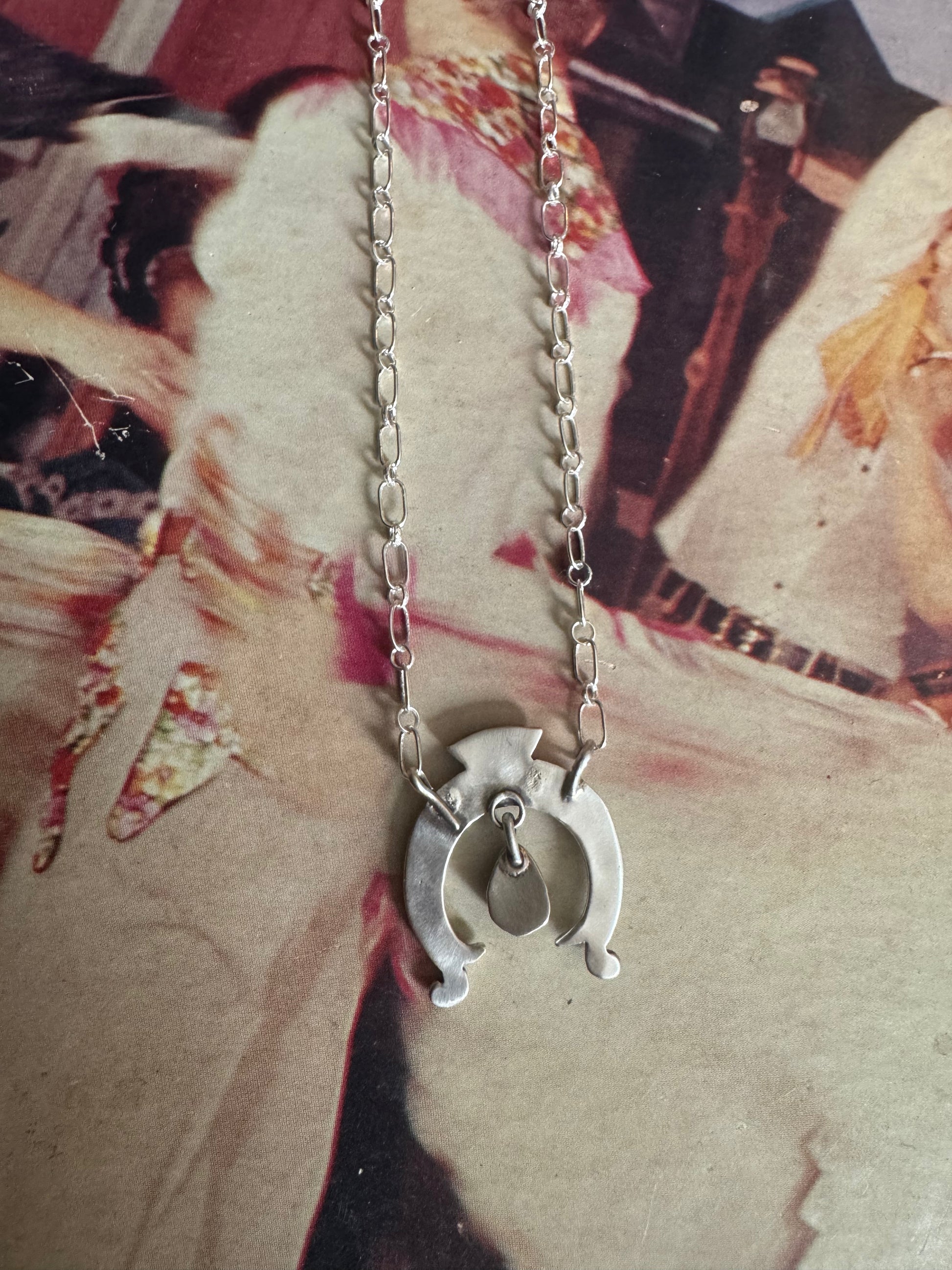 Native America Navajo Sterling Silver Turquoise Naja Necklace By Gary Shorty