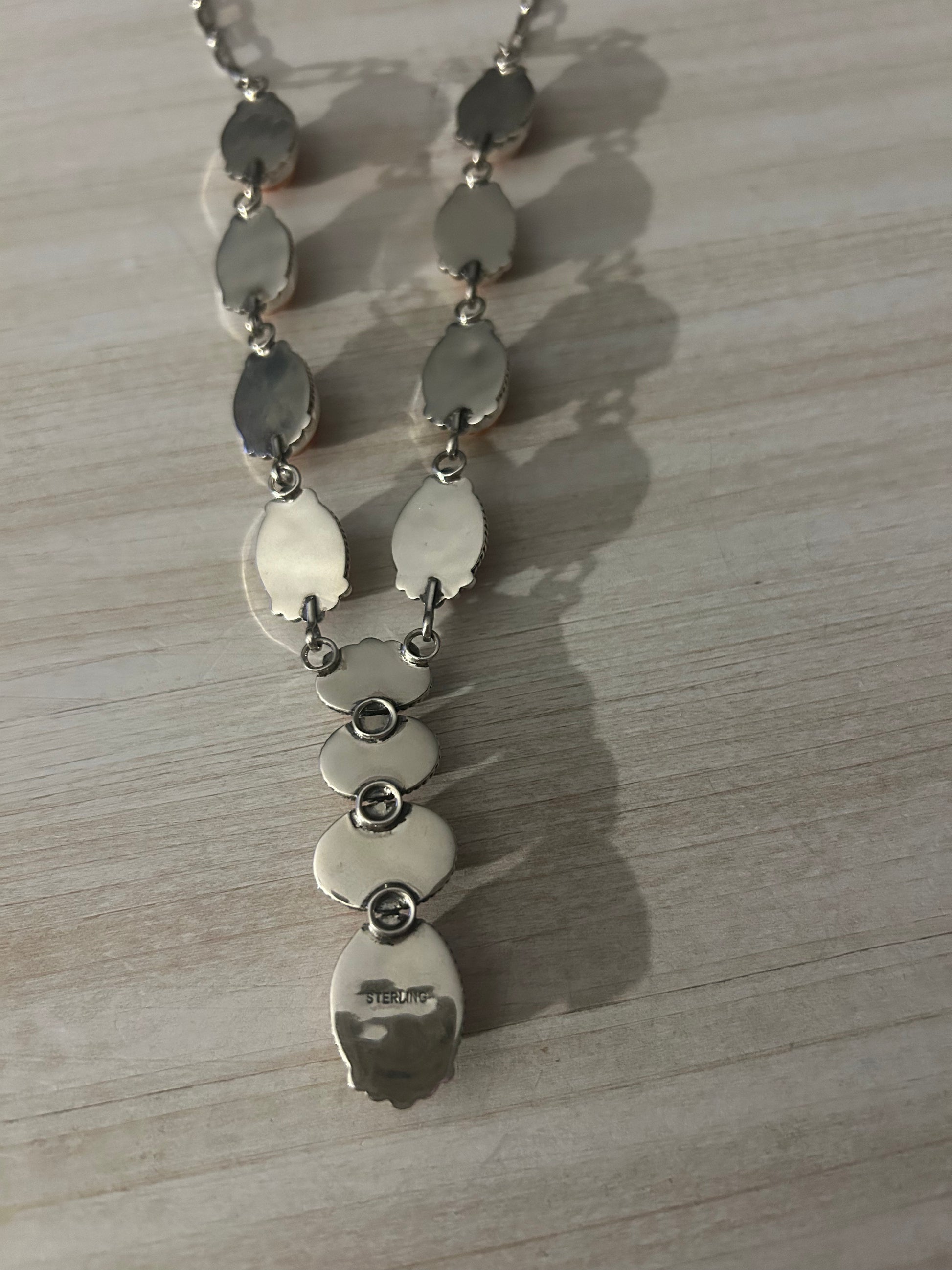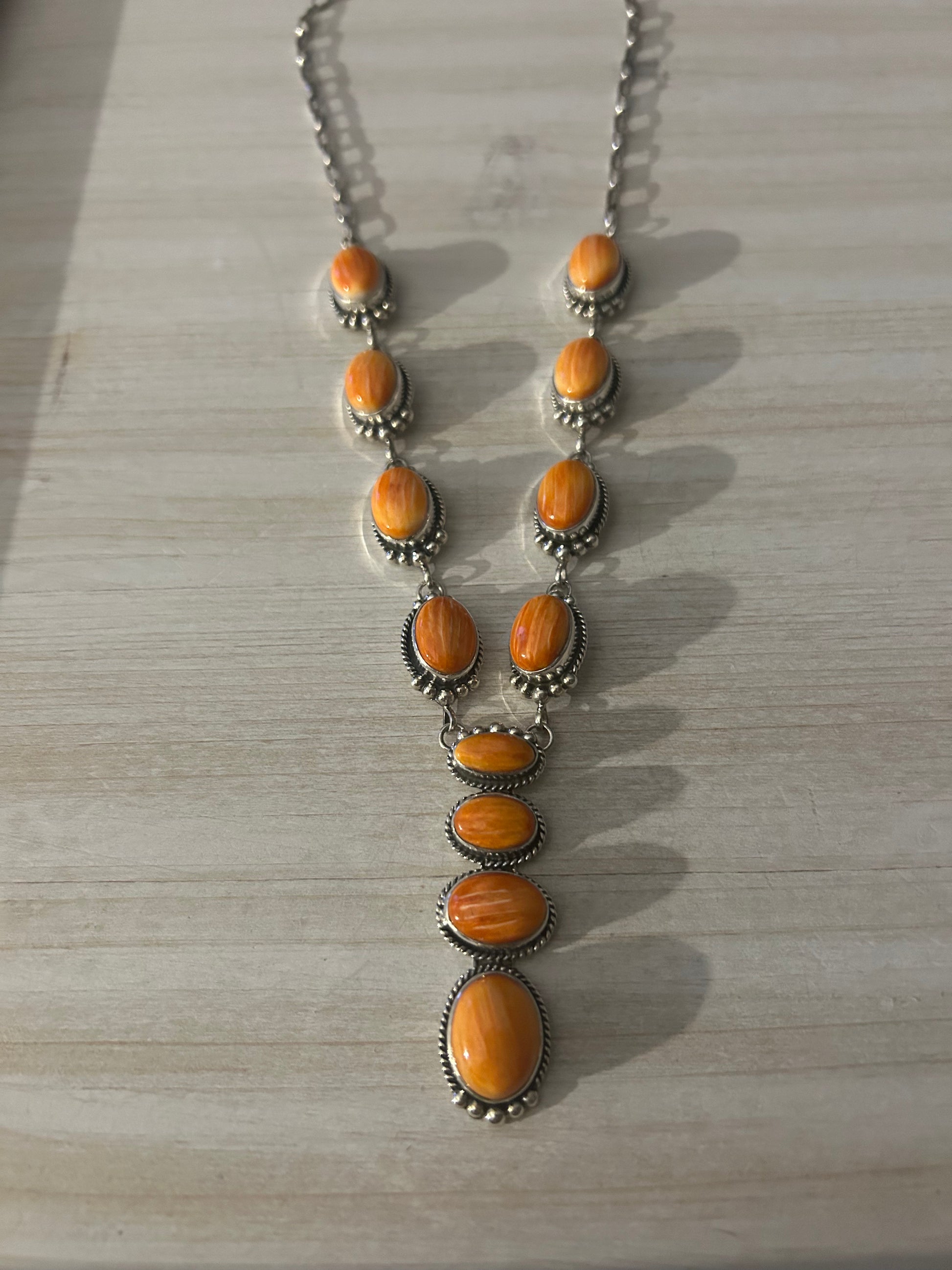 Orange spiny oyster 12 stone lariat necklace