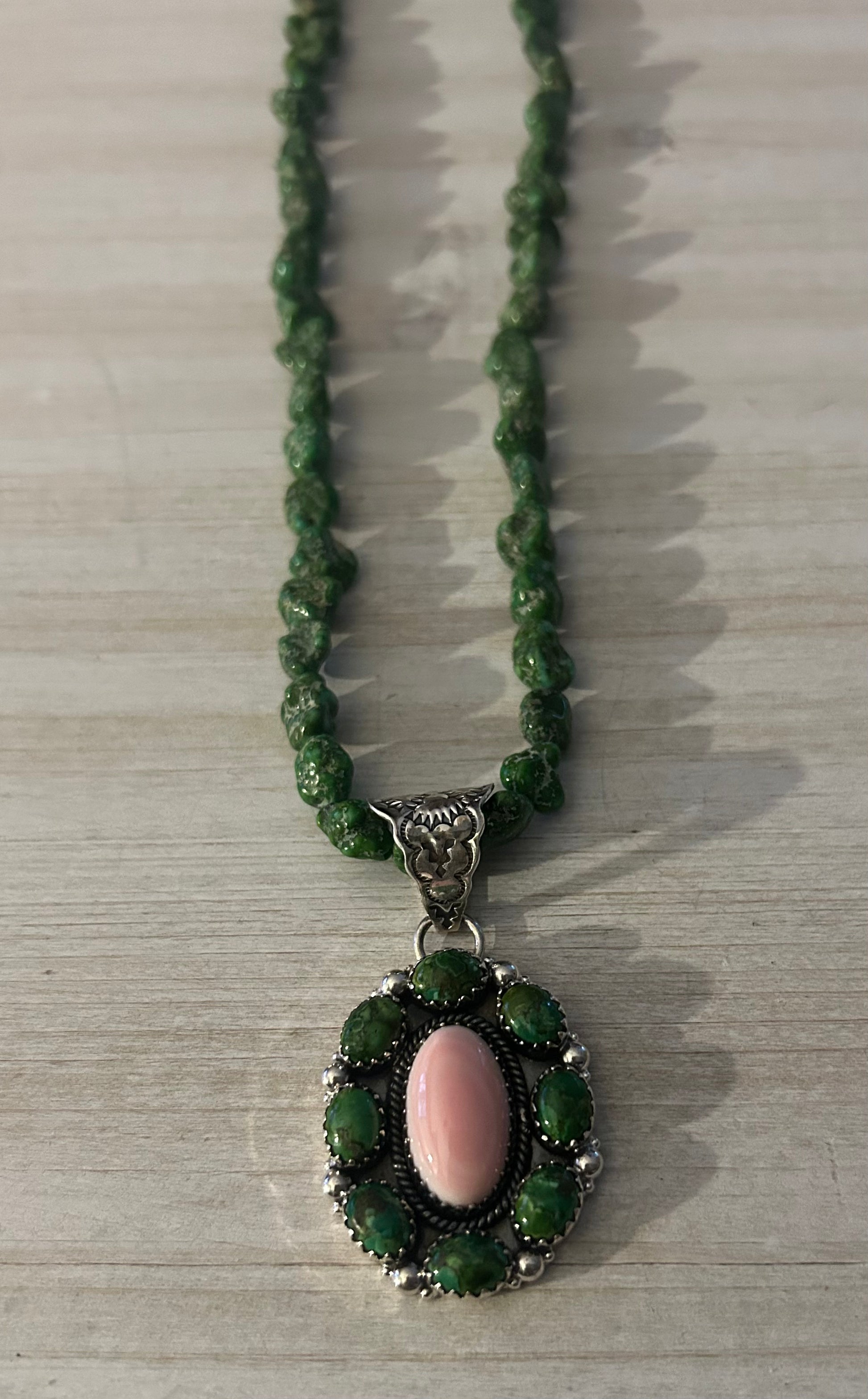 Pink conch & Sonoran Gold Turquoise cluster pendant