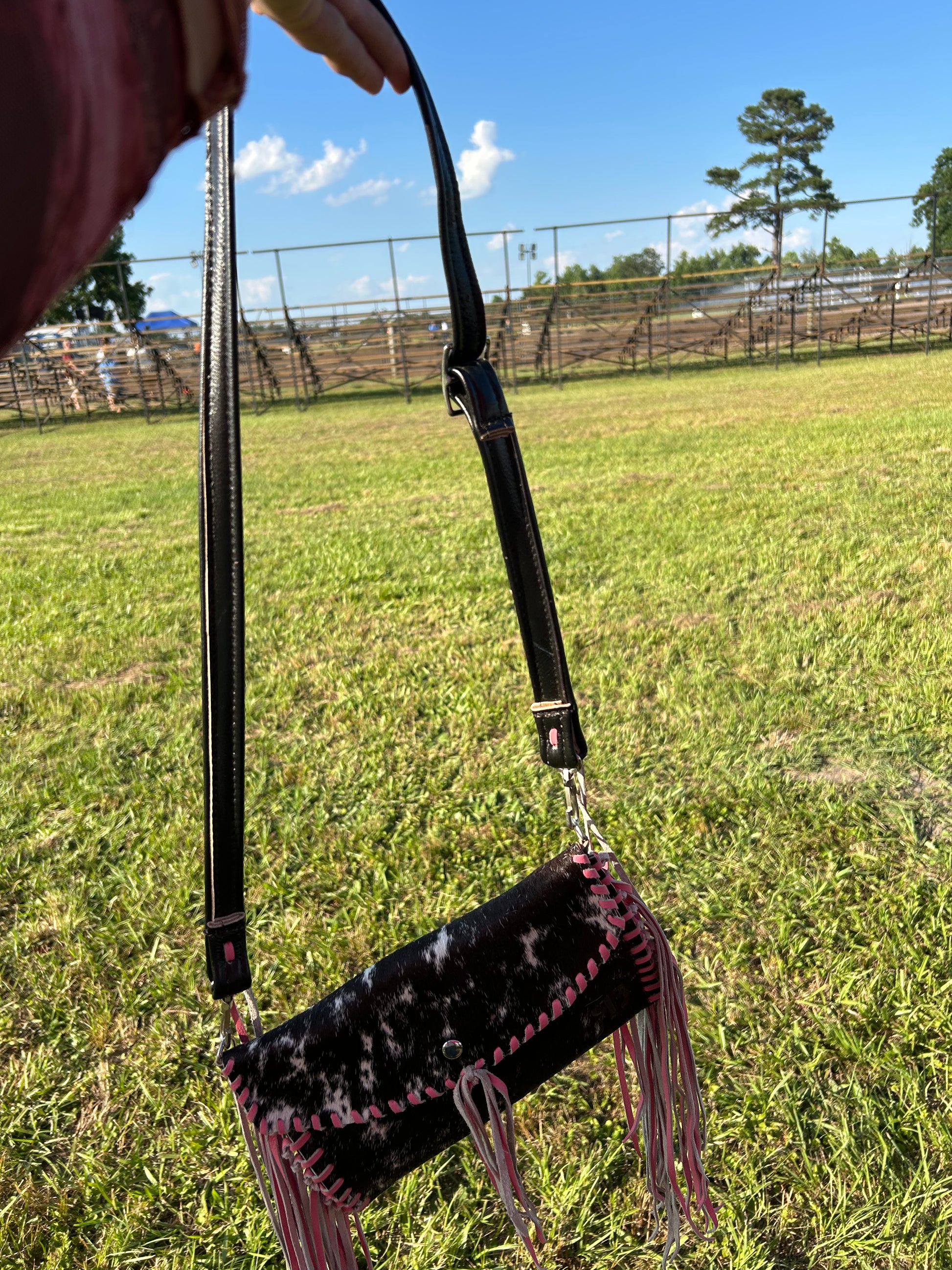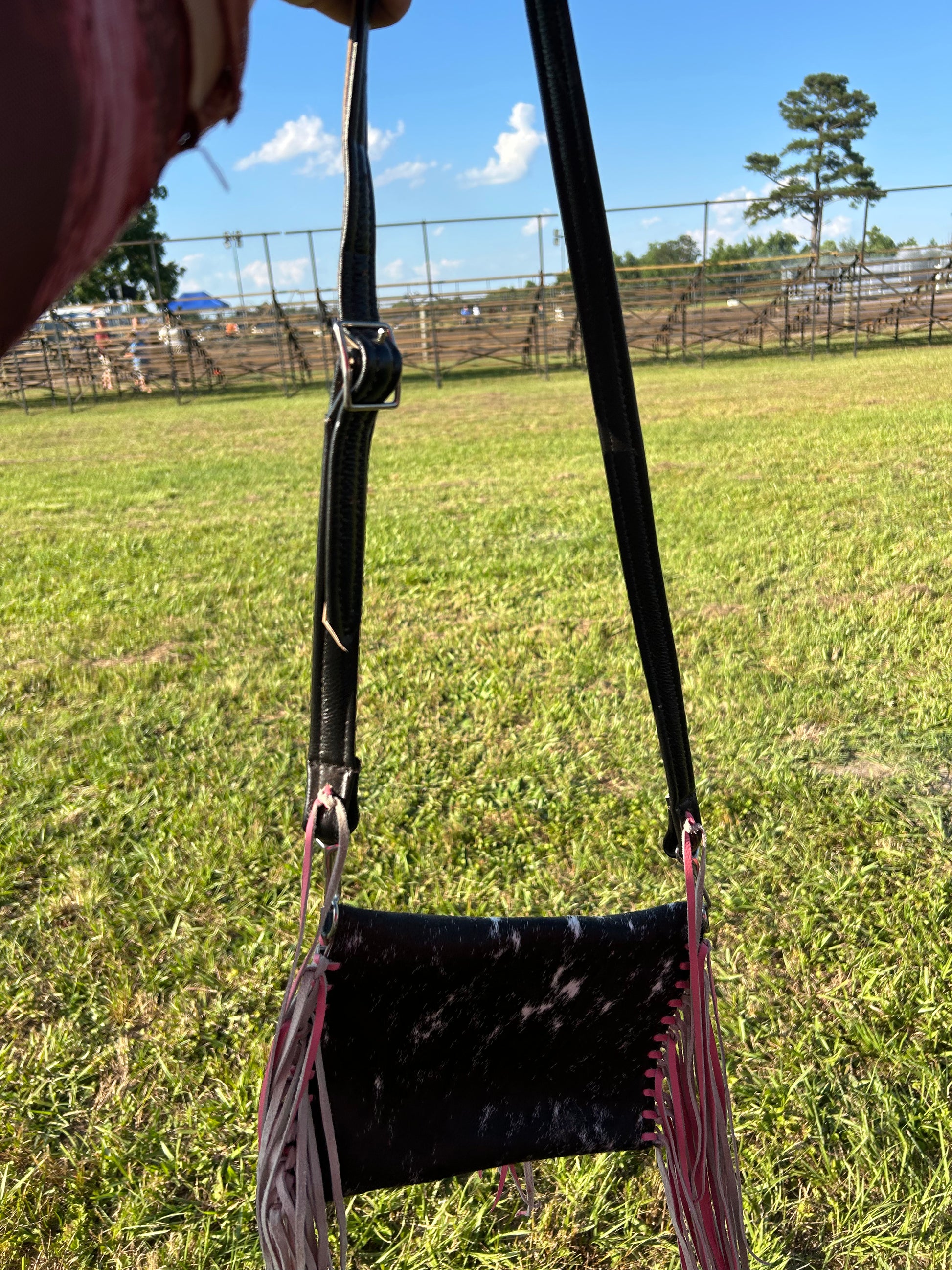 Pink fringe cowhide mini purse
