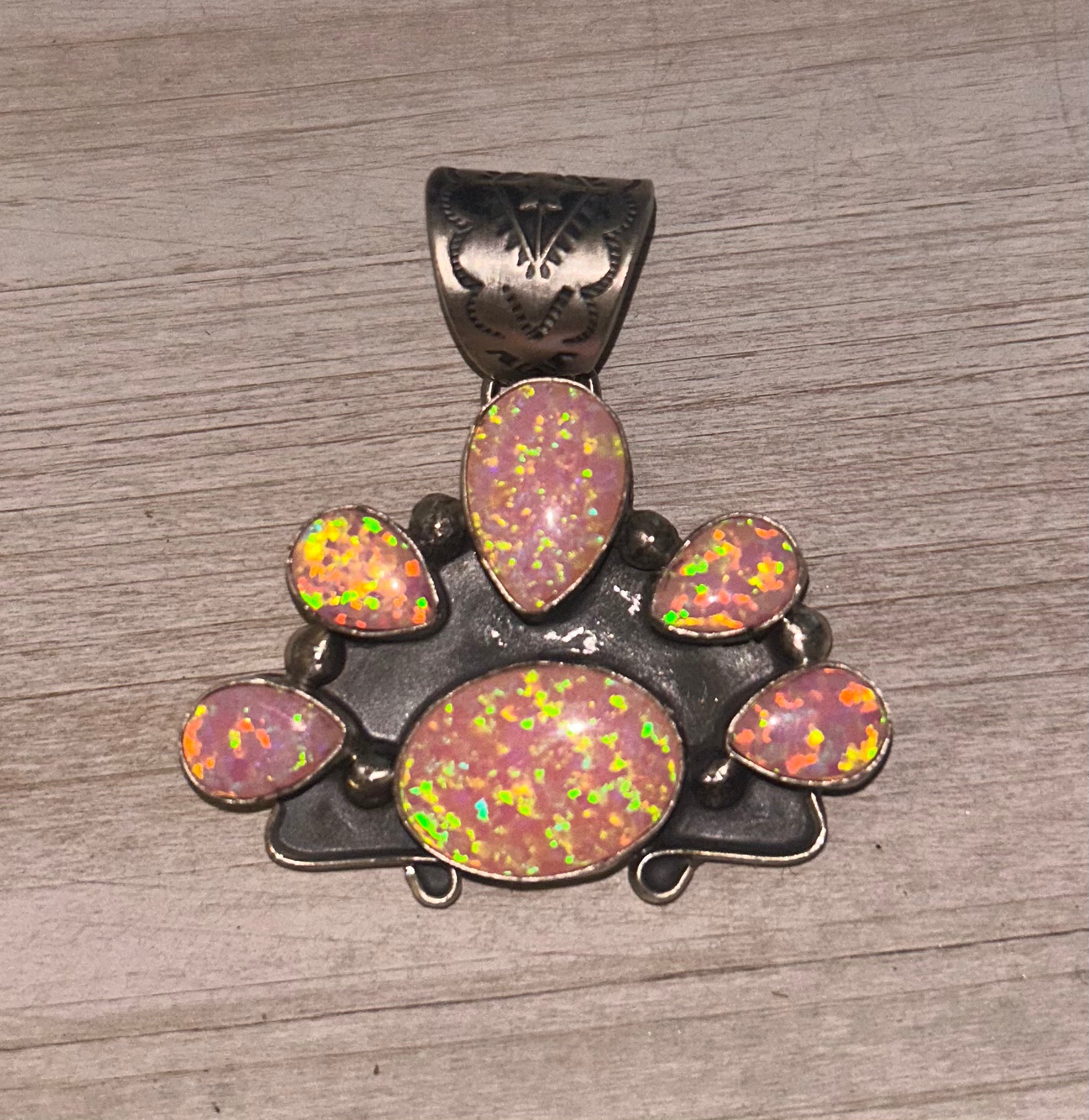 Pink Spider Opal Half Cluster Pendant