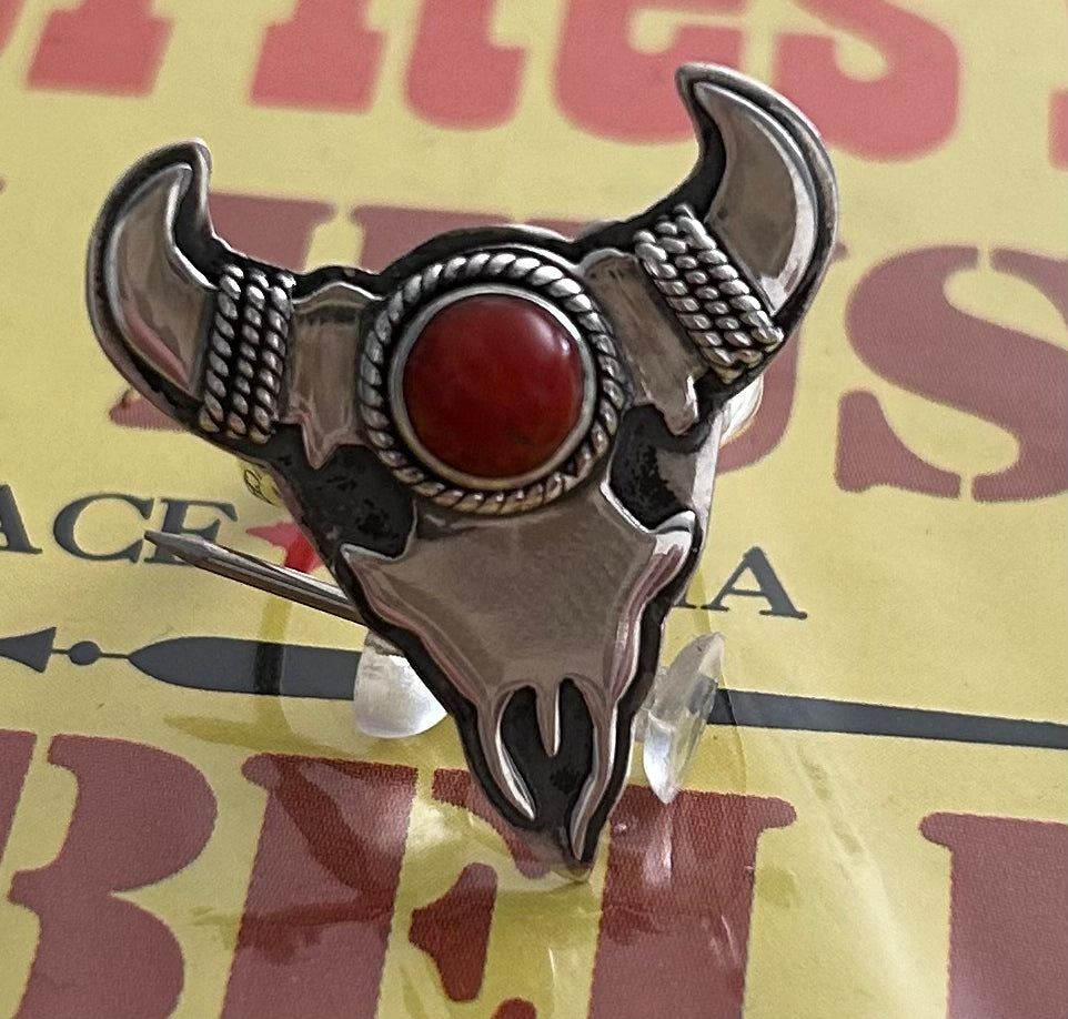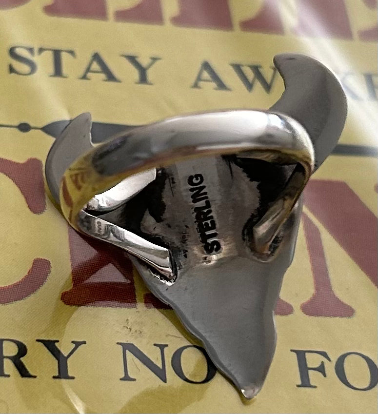 Red spiny oyster steer head ring size 8 1/2