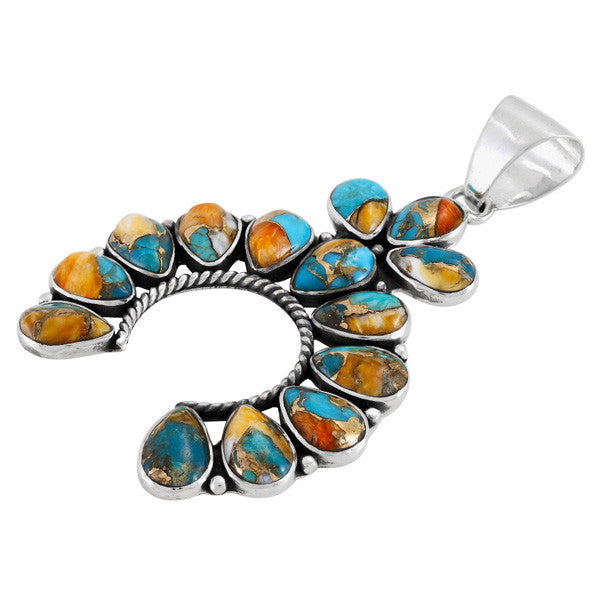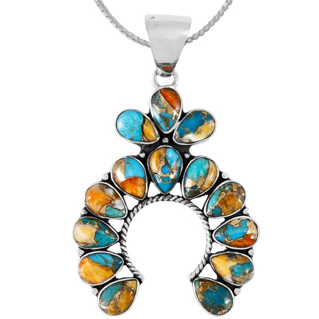 Naja Pendant with 18" box chain in Sterling Silver & a special fusion of genuine Spiny Oyster and Turquoise.