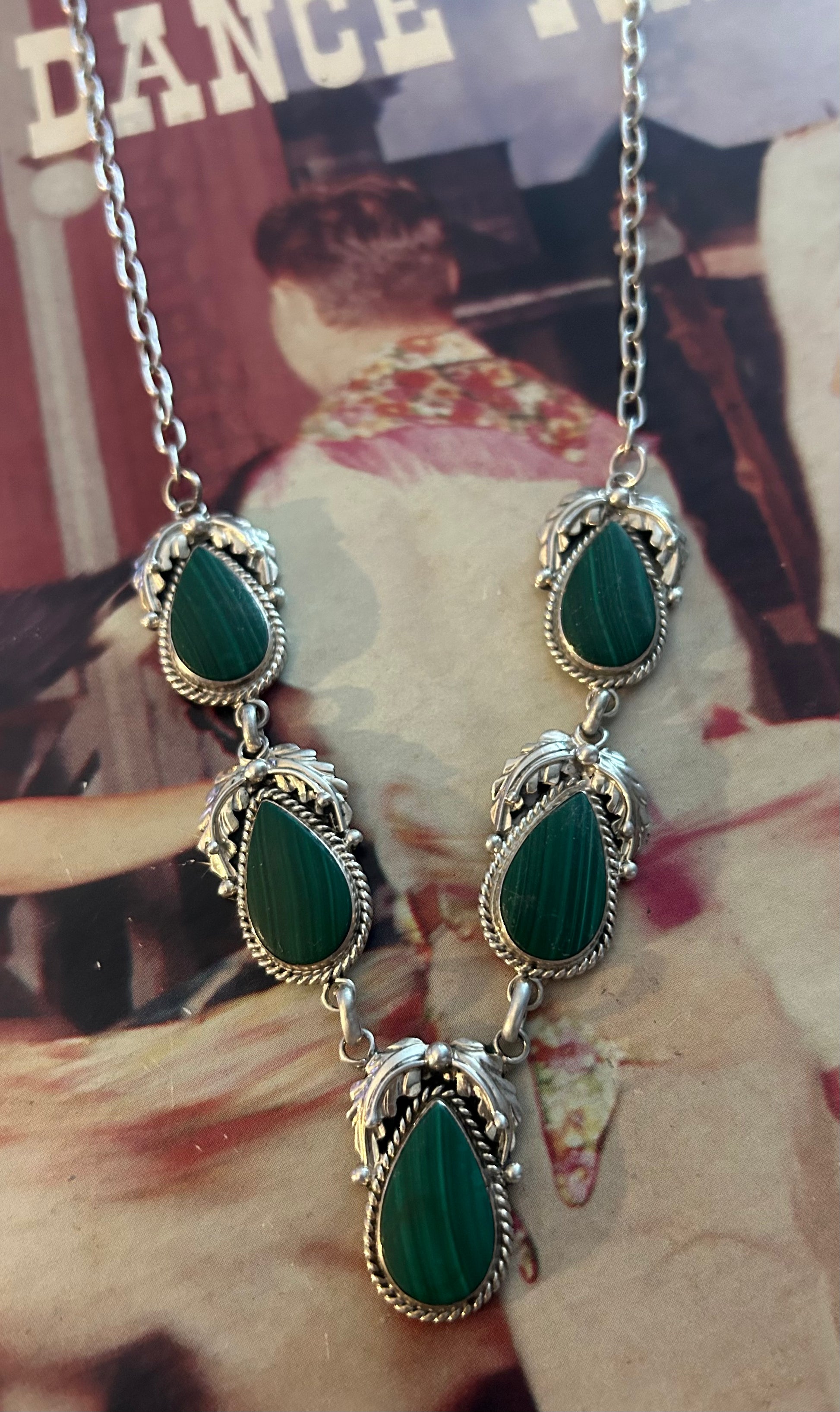 Vintage malachite lariat necklace